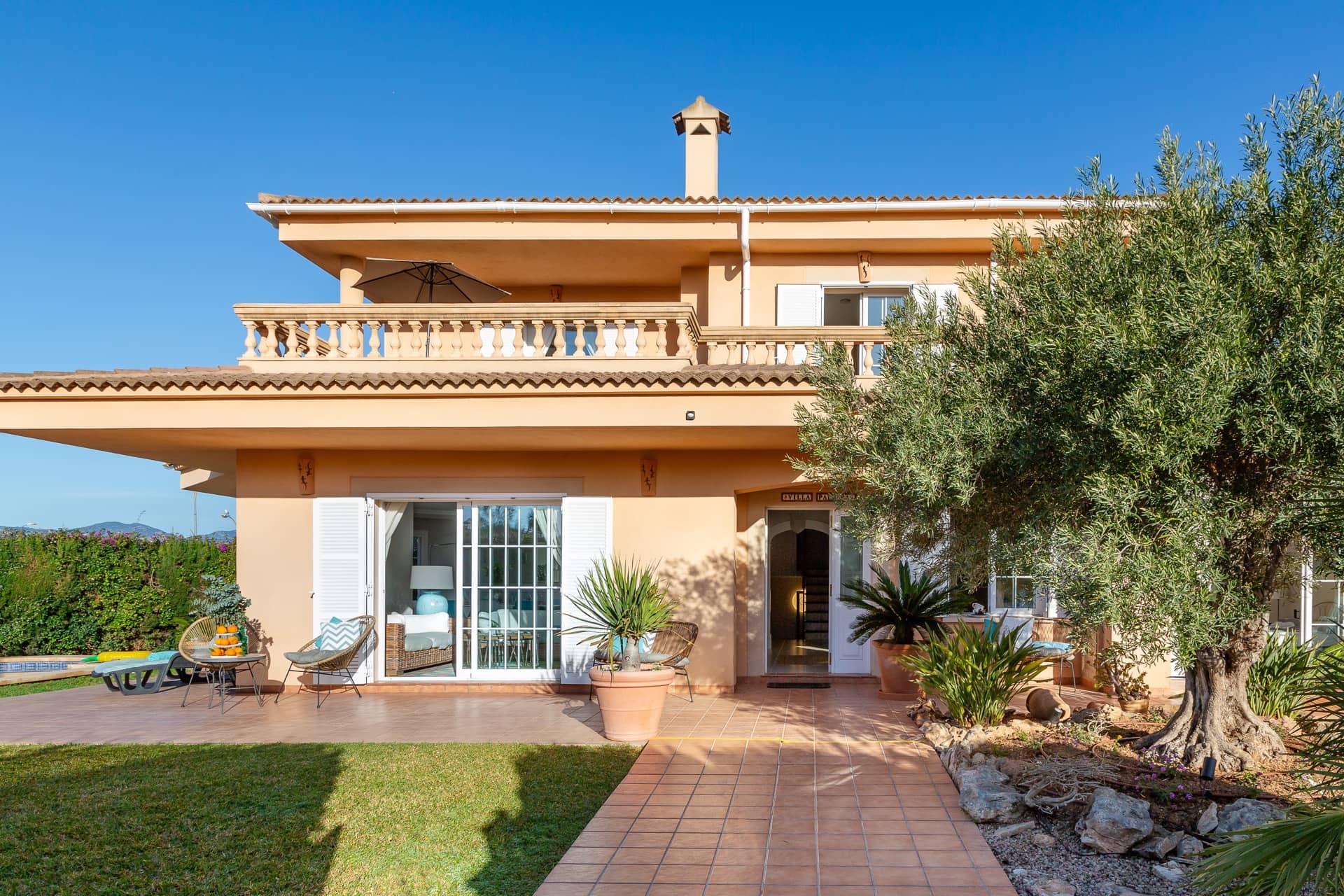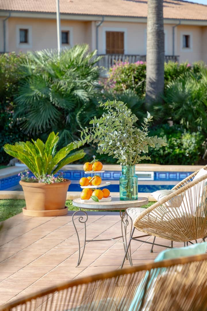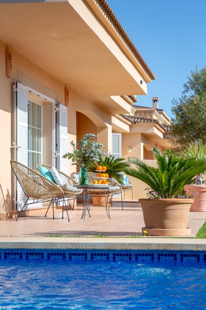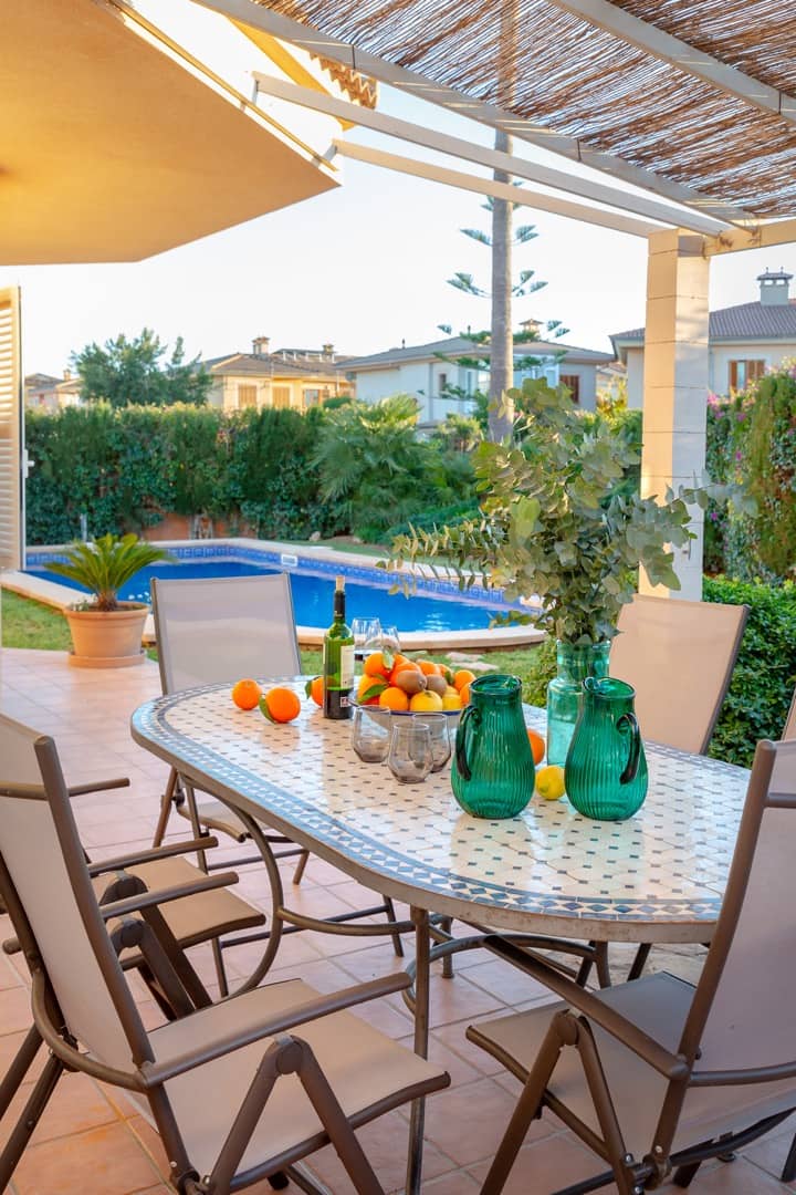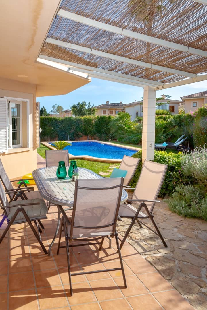 Im Süden Mallorcas, nur 10 Minuten vom internationalen Flughafen Palma entfernt, liegt unsere wunderschöne VILLA PALMERA in der Urbanisation Ses Cases Noves, in der Gemeinde Marratxí. Auf 250 m2 Wohnfläche lässt es sich komfortabel Urlaub machen: 4 Schlafzimmer (alle mit Klimaanlagen und zusätzlichen Ventilatoren), 3 Bäder, großes Wohn-Esszimmer, moderne Küche und ein großzügiger Pool im wundervollen Garten. Ein Traum für bis zu 8 Personen für eine unvergessliche Zeit!